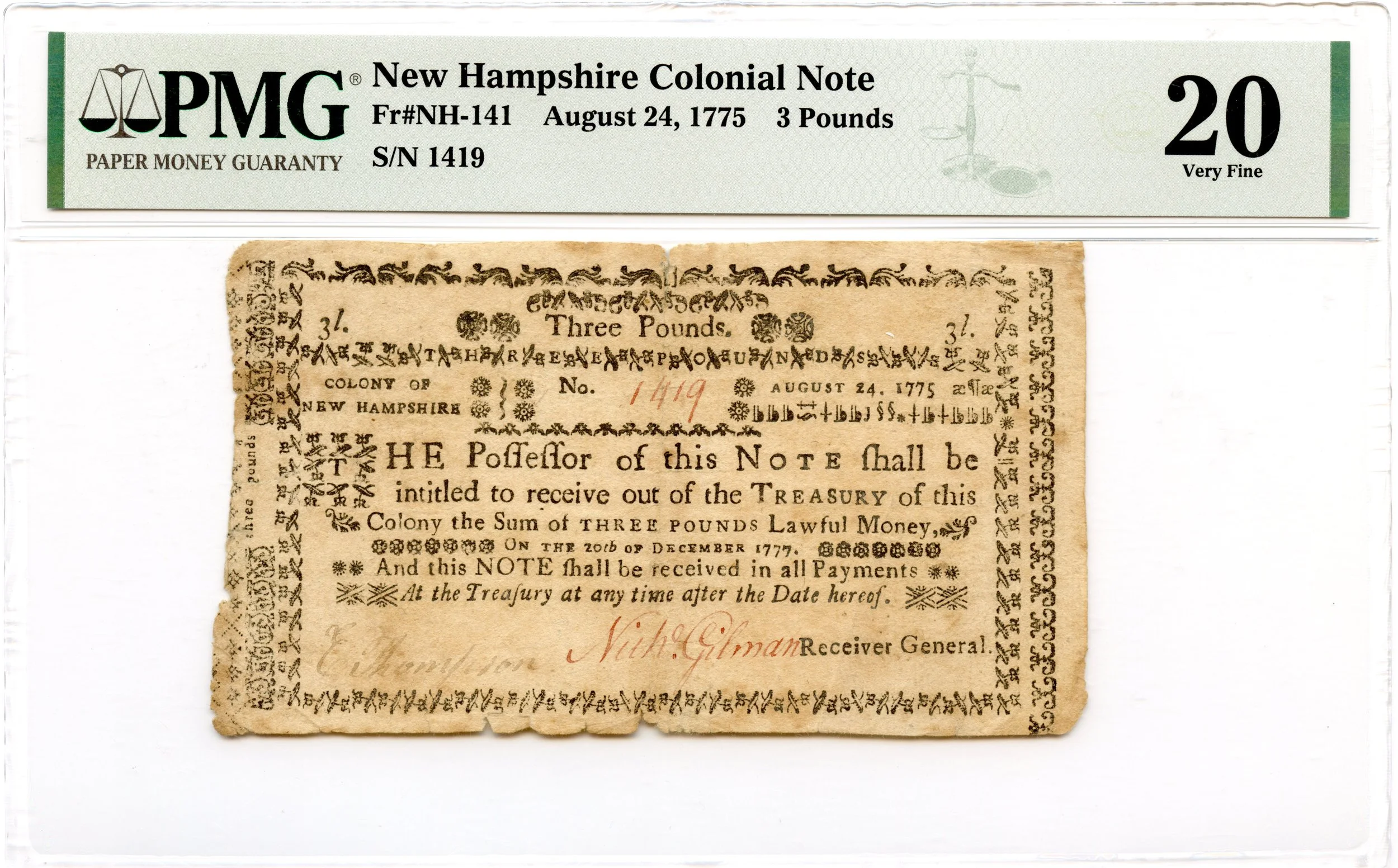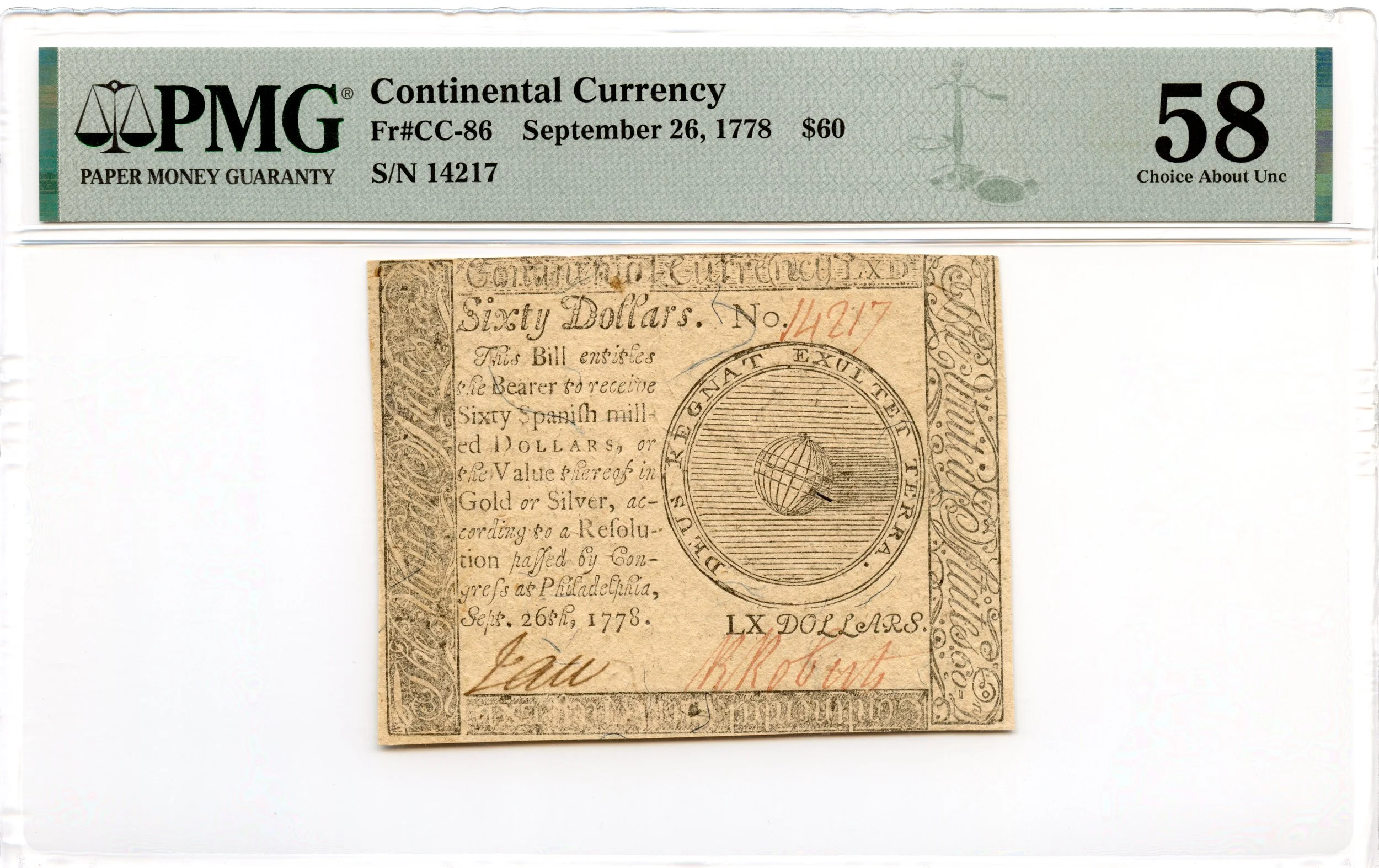 Categories: Inventory Featured Items2 Continental Currency2 Connecticut2 Delaware2 Georgia2 La Louisiane2 Maryland2 Massachusetts2 New Hampshire2 New Jersey2 New York2 North Carolina2 Pennsylvania Rhode Island South Carolina Vermont Virginia Documents Obsolete Currency U.S. Currency Confederate Currency World Currency Featured Items Continental Currency Connecticut Delaware Georgia La Louisiane Maryland Massachusetts New Hampshire New Jersey New York North Carolina Benjamin Franklin Famous Signers ARCHIVE Continental Currency Connecticut Delaware Georgia La Louisiana Maryland Massachusetts New Hampshire New Jersey New York North Carolina Pennsylvania Rhode Island South Carolina Vermont Virginia Inventory Inventory | Featured Items2 | Continental Currency2 | Connecticut2 | Delaware2 | Georgia2 | La Louisiane2 | Maryland2 | Massachusetts2 | New Hampshire2 | New Jersey2 | New York2 | North Carolina2 | Pennsylvania | Rhode Island | South Carolina | Vermont | Virginia | Documents | Obsolete Currency | U.S. Currency | Confederate Currency | World Currency | Featured Items | Continental Currency | Connecticut | Delaware | Georgia | La Louisiane | Maryland | Massachusetts | New Hampshire | New Jersey | New York | North Carolina | Benjamin Franklin | Famous Signers | ARCHIVE | 1863 $100 Confederate States of America T-40 CSA PMG AU-58 EPQ *Exceptional* $0.00 Sold Out 1918 $1 Federal Reserve Bank Note Boston Fr#710 PMG VF-25 $185.00 1815 25 Cents Glassville, New York Obsolete Note PMG F-15 GCC Green *Scarce* $265.00 1834 $100 Planters Bank Natchez, Mississippi Obsolete Note PCGS F-15 GCC Green $225.00 18XX $5 Iron Bank Falls Village, Connecticut Obsolete Note PMG Superb GEM 68 EPQ GCC Green $580.00 1795 Colonial Lottery Ticket - Washington City Canal 12th Lottery PMG CU-63 GCC Green $265.00 Virginia Colonial Note Fr#VA-209a March 1, 1781 $1,000 PMG VF-30 *6 Known* $0.00 Sold Out South Carolina Colonial Note Fr#SC-154 February 8, 1779 $50 PMG VF-20 *Coram* $625.00 Sold Out Rhode Island Colonial Note Fr#RI-291/293 May, 1786 9d-2s6d PMG CU-63 *Uncut Pair* $565.00 Sold Out Rhode Island Colonial Note Fr#RI-270 May 22, 1777 $1/6 PCGS VF-25 *8 Known* $0.00 Sold Out Rhode Island Colonial Note Fr#RI-227 January 15, 1776 30s PMG F-12 *5 Known* $0.00 Sold Out Pennsylvania Colonial Note Fr#PA-136 March 10, 1769 6d PMG F-12 *12 Known* $0.00 Sold Out Pennsylvania Colonial Note Fr#PA-95 May 20, 1758 15s PMG F-15 *Ben Franklin* $0.00 Sold Out North Carolina Colonial Note Fr#NC-105 July 14, 1760 2s PCGS FR-2 *Only 2 Known* $0.00 Sold Out New York Colonial Note Fr#NY-164 February 16, 1771 2Pds PMG VF-20 $240.00 Sold Out New Jersey Colonial Note Fr#NJ-182 March 25, 1776 3Pds PMG F-15 *Red & Blue* $0.00 Sold Out New Hampshire Colonial Note Fr#NH-166 June 28, 1776 15d PMG VG-10 *5 Known* $2,500.00 Sold Out Massachusetts Colonial Note Fr#MA-180 December 7, 1775 4s6d PCGS G-6 *Sword in Hand* $2,350.00 Sold Out Maryland Colonial Note Fr#MD-48 January 1, 1767 $8 PMG VF-20 $255.00 Sold Out Georgia Colonial Note Fr#GA-71d 1776 $1 Green Justice PCGS VF-35 *Ex. Newman* $1,250.00 Sold Out Delaware Colonial Note Fr#DE-30 February 28, 1746 20s PMG VG-10 *Ben Franklin* $1,450.00 Sold Out Connecticut Colonial Interest Certificate 1788 Treasury Office PMG AU-55 GCC Green *Scarce Type* $295.00 Sold Out Continental Currency Fr#CC-95 January 14, 1779 $40 PMG AU-50 $0.00 Sold Out Continental Currency Fr#CC-78 April 11, 1778 $40 PMG VF-25 *Yorktown* $6,950.00 Continental Currency Fr#CC-63 May 20, 1777 $2 PMG F-15 *Extremely Scarce* $0.00 Sold Out Continental Currency Fr#CC-44 July 22, 1776 $7 PMG VF-20 *Scarce Issue* $0.00 Sold Out Continental Currency Fr#CC-21 February 17, 1776 $1/2 PMG VF-20 *Fugio Note* $475.00 Sold Out Continental Currency Fr#CC-8 May 10, 1775 $8 PMG VF-35 *First Issue* $495.00 Sold Out 1863 $5 Legal Tender Note Fr#63 PMG VG-10 GCC Gold *Eye Appeal* $675.00 1862 5 Cents Mohawk Valley Bank Mohawk, NY Obsolete Note PMG VF-20 $0.00 Sold Out 1850s $50 Canal Bank New Orleans, Louisiana Obsolete Note PCGS GEM-66 PPQ GCC Gold $220.00 1838 $10 Bank of the United States Philadelphia, PA Obsolete PCGS F-15 *Nicholas Biddle* $350.00 1795 Colonial Lottery Ticket - Washington City Canal 12th Lottery PMG CU-63 GCC Green $265.00 Virginia Colonial Note Fr#VA-195 October 16, 1780 $400 PMG VF-25 *High Denomination* $0.00 Sold Out South Carolina Colonial Note Fr#SC-158 February 8, 1779 $90 PMG CU-63 GCC Green *Finest Known PMG* $6,750.00 Rhode Island Colonial Note Fr#RI-287 July 2, 1780 $7 PMG GEM-65 EPQ GCC Gold *Exceptional* $0.00 Sold Out Rhode Island Colonial Note Fr#RI-221 January 15, 1776 2s PCGS FR-2 *6 Known* $0.00 Sold Out Rhode Island Colonial Note Fr#RI-12RP July 5, 1715 4s6d PMG AU-53 *Cohen Reprint* $0.00 Sold Out Pennsylvania Colonial Note Fr#PA-184 October 25, 1775 9d PMG XF-40 GCC Gold *Exceptional* $0.00 Sold Out Pennsylvania Colonial Note Fr#PA-181 October 25, 1775 3d PMG VF-20 $175.00 Sold Out North Carolina Colonial Note Fr#NC-137 December, 1771 5s PMG VF-30 $215.00 North Carolina Colonial Note Fr#NC-124 April 23, 1761 20s PMG VF-20 $180.00 New York Colonial Note Fr#NY-238 February 20, 1790 1 Penny PMG VG-10 *14 Known* $0.00 Sold Out New York Colonial Note Fr#NY-183 January 6, 1776 4s PMG XF-45 GCC Green $315.00 New Jersey Colonial Note Fr#NJ-212 1786 3s PMG F-15 *Scarce* $0.00 Sold Out New Jersey Colonial Note Fr#NJ-179 March 25, 1776 12s PMG AU-58 *Eye Appeal* $0.00 Sold Out New Jersey Colonial Note Fr#NJ-178 March 25, 1776 6s PMG AU-50 *John Hart Signature* $0.00 Sold Out New Jersey Colonial Note Fr#NJ-168 April 16, 1764 3Pd PCGS VF-20 GCC Green *Ex. Newman* $0.00 Sold Out New Hampshire Colonial Note Fr#NH-130RP June 20, 1775 40s PMG XF-45 EPQ *Paul Revere* $0.00 Sold Out Massachusetts Colonial Note Fr#MA-283 May 5, 1780 $7 PMG UNC-62 EPQ GCC Gold *Exceptional* $300.00 Sold Out Maryland Colonial Note Fr#MD-70 April 10, 1774 $8 PMG VF-30 $0.00 Sold Out Delaware Colonial Note Fr#DE-89 May 1, 1777 5s PMG VF-20 GCC 