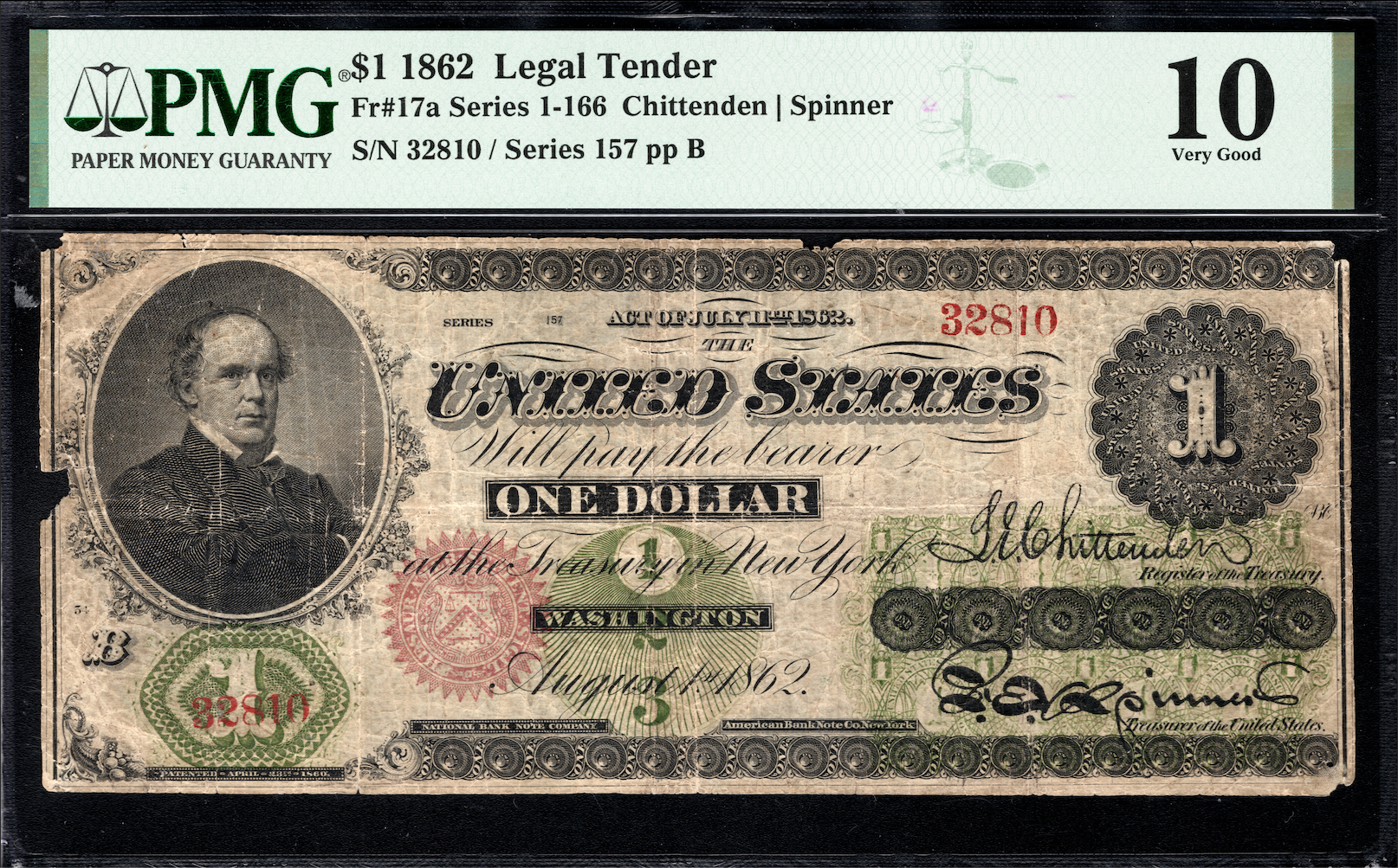 Beautiful early legal tender bill. Nice shape for the grade, no comments from PMG.